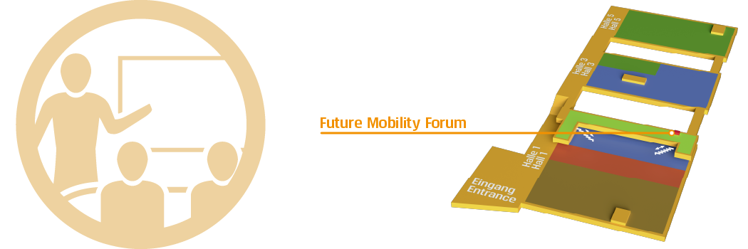 Das Future Mobility Forum findet im Rahmen der Future Mobility Lounge statt und ist als interaktives Dialog-Forum angelegt. Es ermöglicht den direkten Austausch zwischen Referenten und Fachbesuchern.